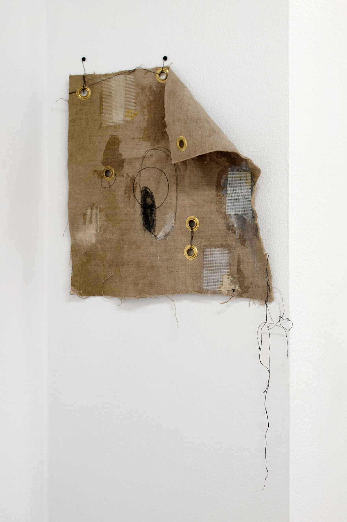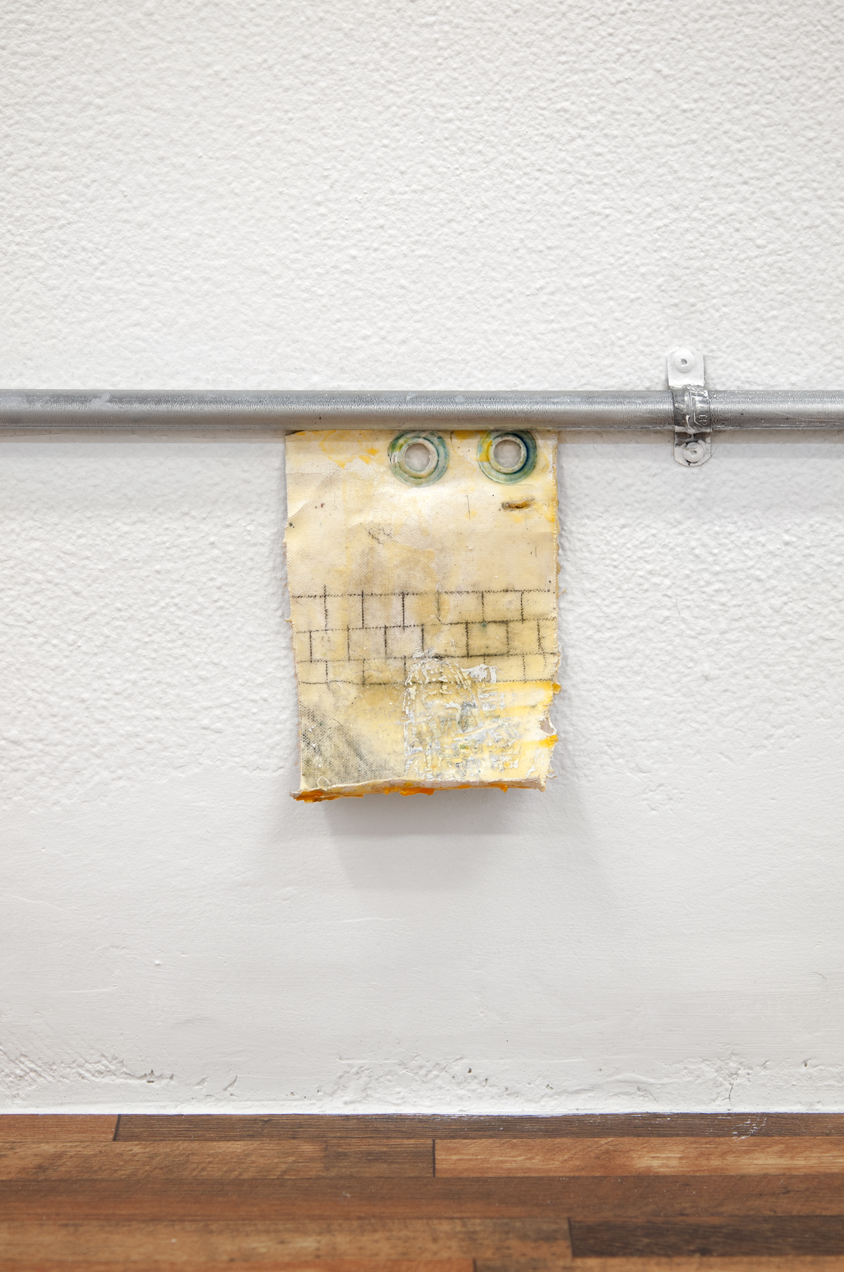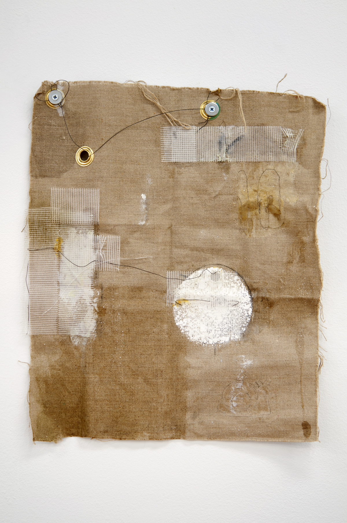 Santiago Leyba No Swimming, 2014 Grommets, canvas tensioner, wire, drywall tape, mixed media on linen