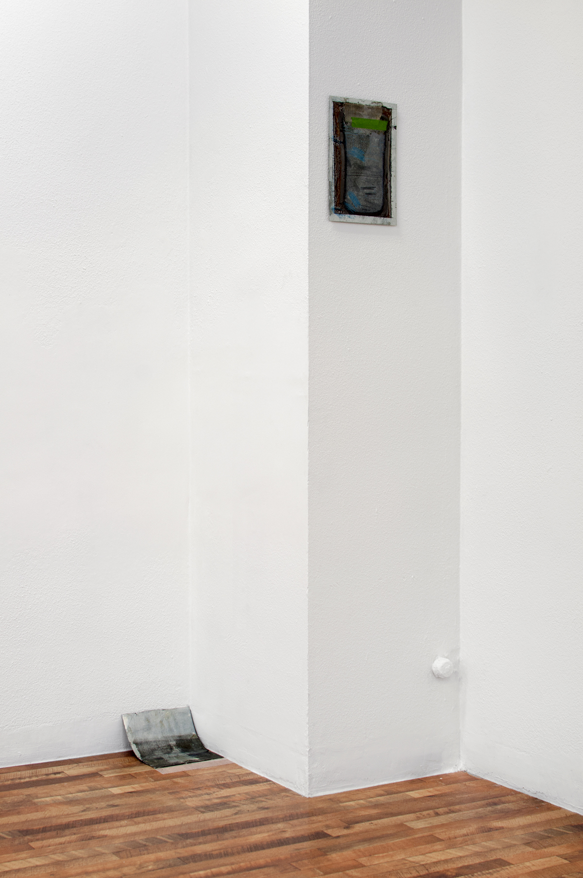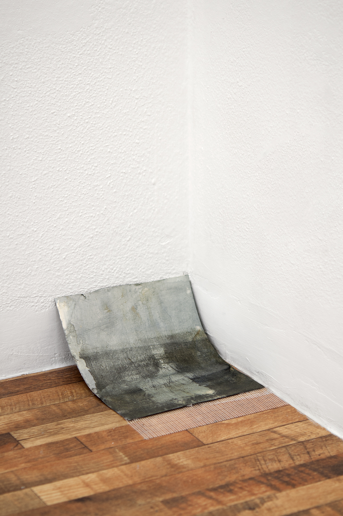 Santiago Leyba Avoidant Plate, 2014 Plated steel shingle, drywall tape