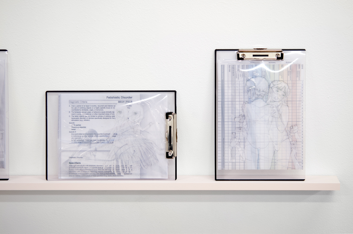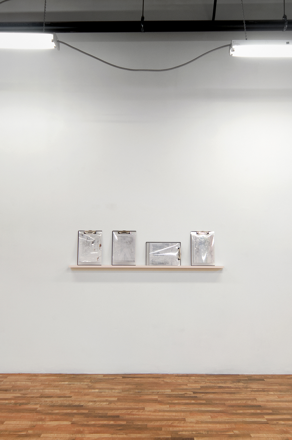 Andrea Crespo Research Gap, 2014 Sarah's Flashbacks, 2014 False Flags, 2014 Bipolarities, 2014 Clipboards, transparency fil, inkjet print, cling film