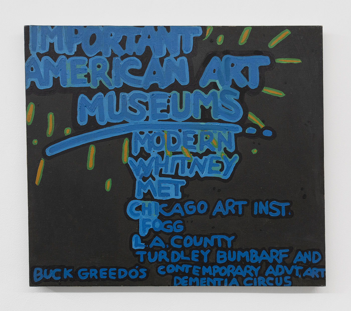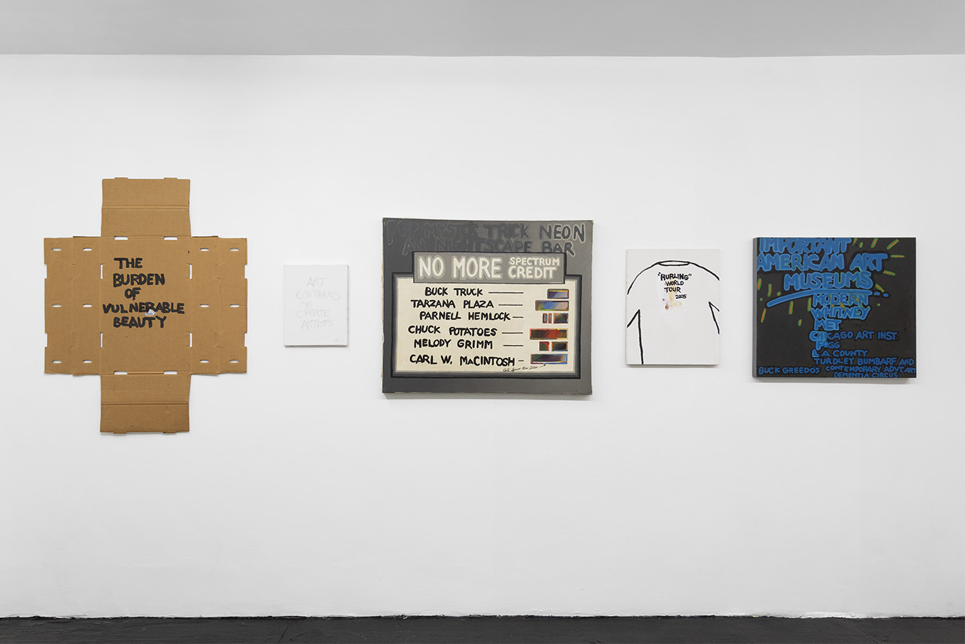 Beery was recently celebrated with a career-spanning exhibition at Fri Art Kunsthalle in Fribourg, Switzerland, 2019 (organized by Balthazar Lovay), accompanied by the artist’s first monograph, published by Mousse. Other recent exhibitions include Wall Dancers, Shoot the Lobster, Los Angeles, 2017; Logoscape/Visual Percussion, Jan Kaps, Cologne, 2016 (organized by Gregor Quack); and Algus Greenspon, New York, 2013 & 2010.