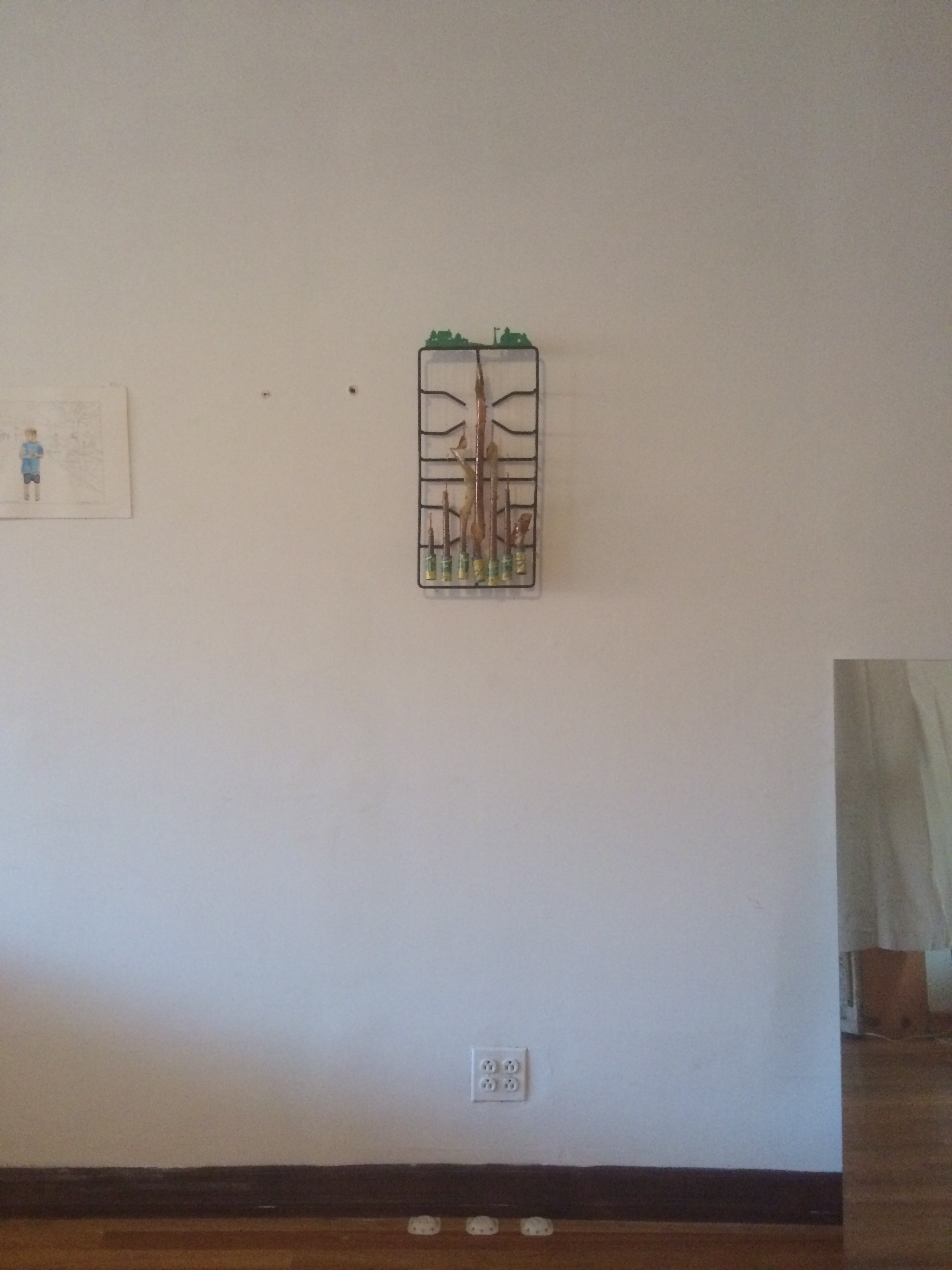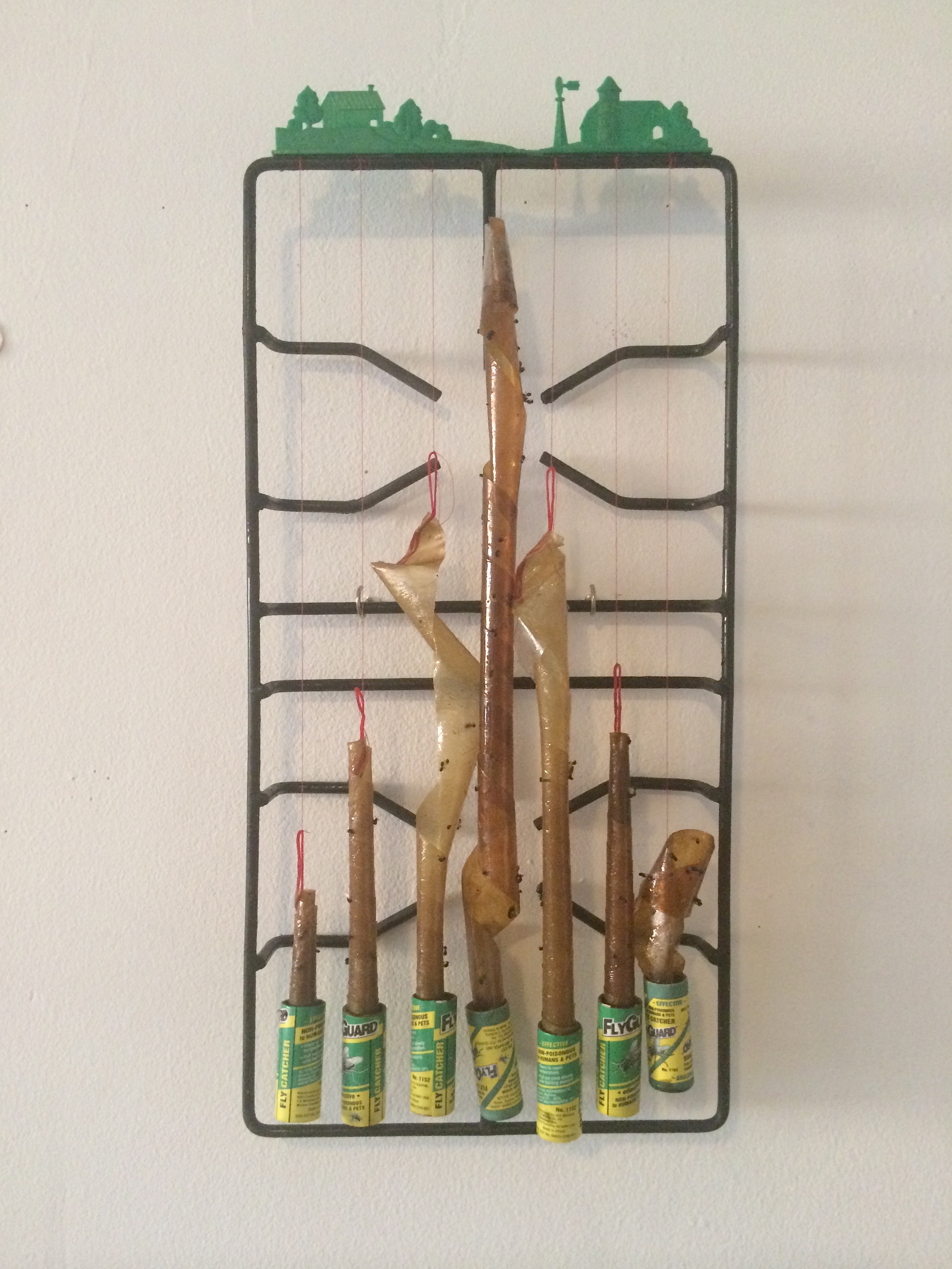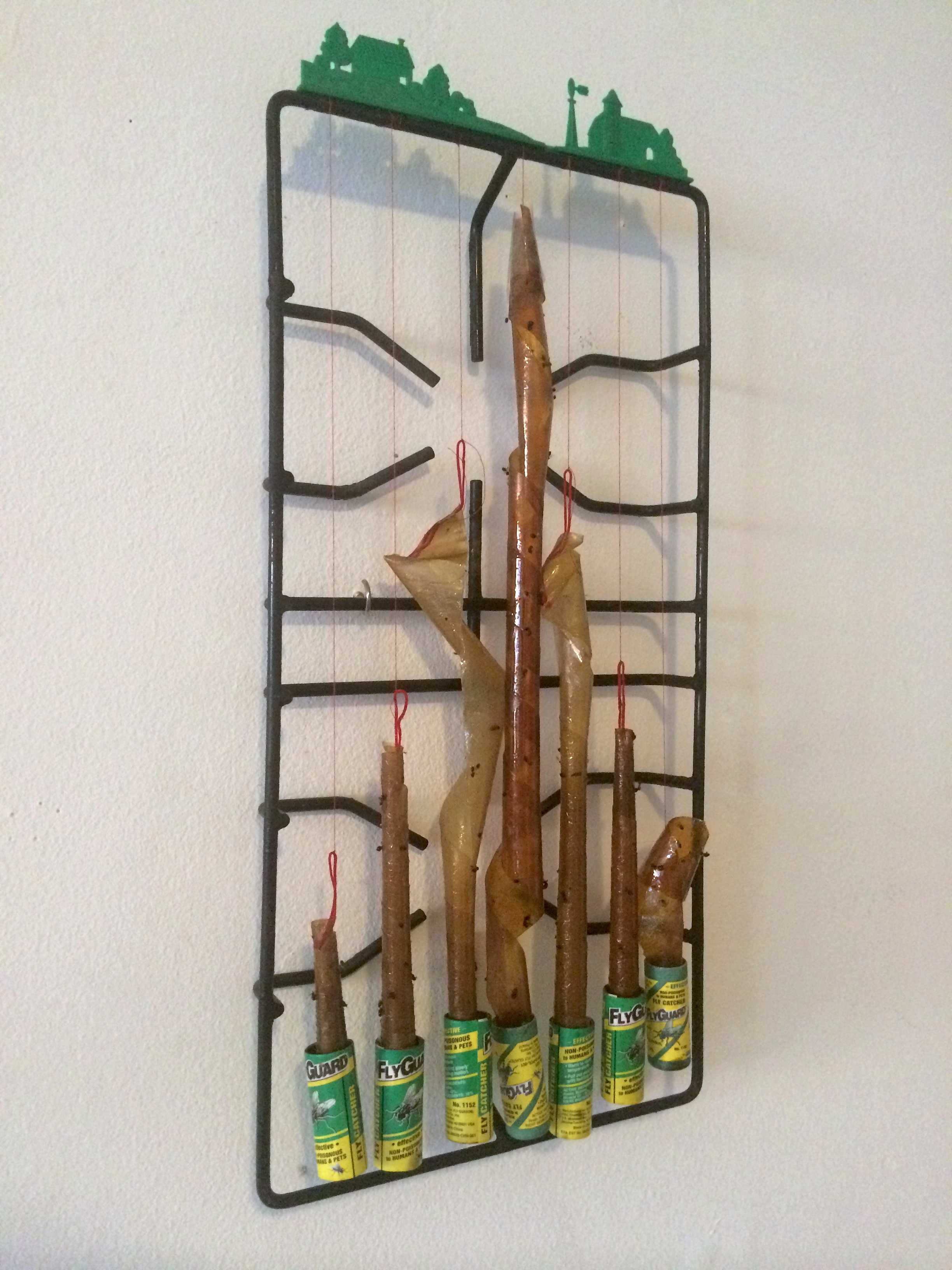 Monument to Uncle Milton, Spring 2014 Stove grate, string, Fly-Guard, winged male ants, Uncle Milton landscape