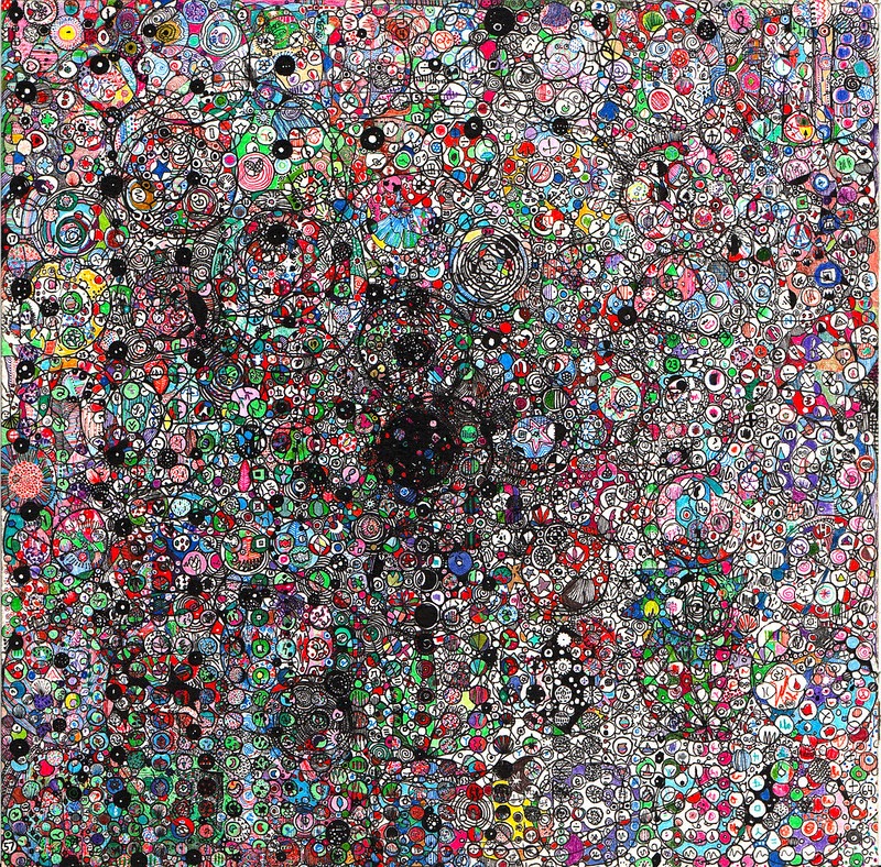 The beginning of the mandalas coincided with changes in Lin’s way of living, which he has described at length in his writing as “recovery”: away from alcohol and synthetic pharmaceuticals, and toward naturally-derived psychedelics (including kratom); away from “think[ing] of his body as a small, swamp-like thing, where anything could be tossed without concern because it’d disappear into the overall stew of him,” and toward “view[ing] his body as an enormous city in which each molecule [...] would not be absorbed into the murky bog of him and be forgotten, but would have a concrete effect on the molecular life of him during its life-span”;2 away from writing which represents existentialist alienation, and toward writing which pursues “awe,” “the mystery,” learning, and a re-enchanted engagement with the world and its various inhabitants. His most recent novel, Leave Society, dares to conclude with an uptick of feeling, a genuinely happy ending.