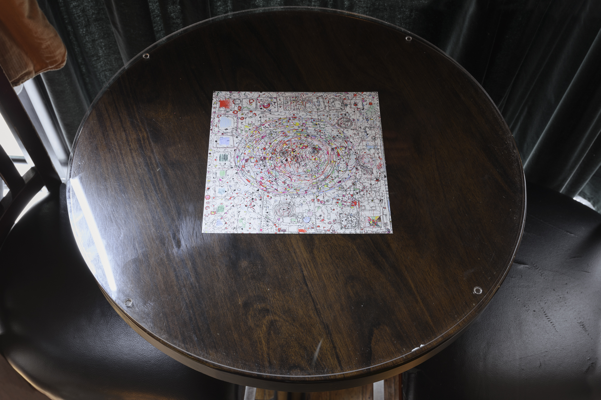 Early on, Lin sold a few original mandalas via eBay, but at this point he keeps the originals for himself, his family, and friends. He sells actual-size print reproductions through his website, and for the run of this exhibition, through Ka-Vá Bar. This is the first public presentation dedicated to the mandalas.