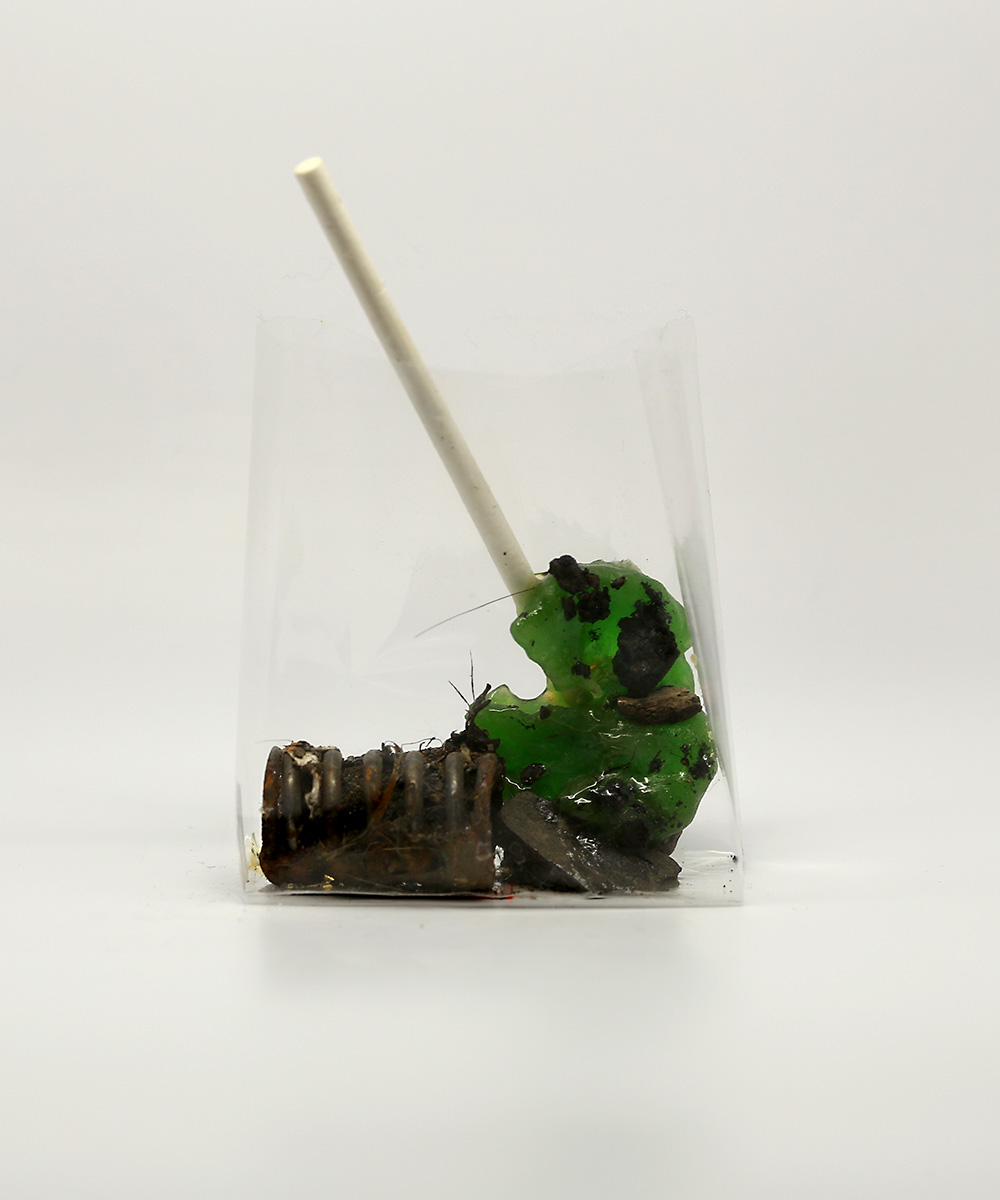 The material bits that Agematsu collects are minute, unassuming and gutter-made. Decay is key, and this show emphasized the staggering variety of its effects. In some cases, it had rendered clumps of paper or cotton swabs remarkably singular. In others, it had melded these elements together, forming dystopic little chimeras: hair folded into lollipops, insects into moss. In every case, Agematsu’s keen sensitivity to his materials’ vibrancy was palpable.